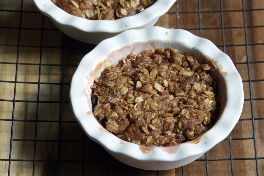 - Combine the brown sugar and flour, cut in butter with a pastry blender until crumbly.