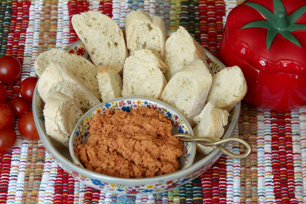 - Blend sundried tomatoes, minced garlic and cream cheese until combined.